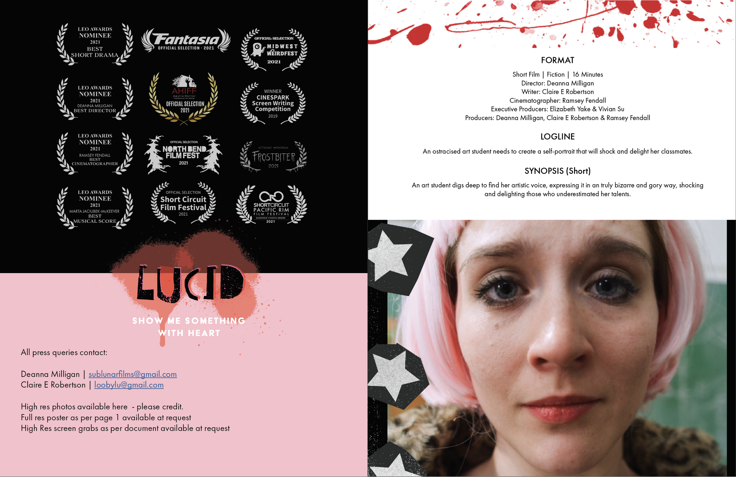 Short film production pitch book for Lucid, directed by Deanna Milliganl